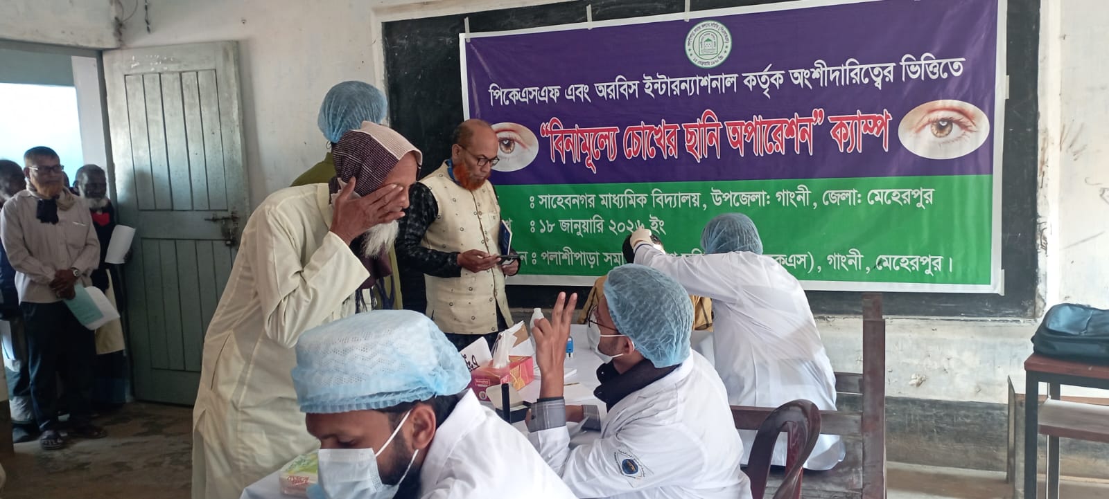 অদ্য ১৮/১/২০২৬ পলাশীপাড়া সমাজ কল্যাণ সমিতি (পিএসকেএস) উদ্যোগে এবং কাজিপুর ইউনিয়নের সমৃদ্ধি কর্মসূচির সহযোগিতায় সাহেবনগর বহুমুখী মাধ্যমিক বিদ্যালয় প্রাঙ্গণে একটি ফ্রি চোখের ছানি অপারেশনের জন্য রোগী বাছাই ক্যাম্প সফলভাবে অনুষ্ঠিত হয়।