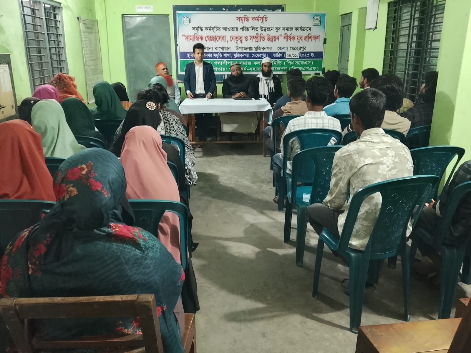 অদ্য-২৪/১১/২০২৫ ইং তারিখে মুজিবনগর উপজেলার বাগোয়ান ইউনিয়নে সমৃদ্ধি কর্মসূচির “উন্নয়নে যুব সমাজ” কার্যক্রমের আওতায় ‘সামাজিক স্বেচ্ছাসেবা,নেতৃত্ব ও সম্প্রীতি উন্নয়ন ‘ প্রশিক্ষণের ২য় ব্যাচের প্রশিক্ষণ শেষ হয়েছে। উক্ত প্রশিক্ষণের প্রশিক্ষক ছিলেন জনাব মোঃ রকিব উদ্দিন (উপজেলা যুব উন্নয়ন কর্মকর্তা) ও আশরাফুল ইসলাম বিন রেজাউল হক (সহযোগী গবেষক), মাকতাবাতুস সুন্নাহ রাজশাহী (অধ্যক্ষ) মুজিবনগর সালাফী একাডেমী, প্রশিক্ষণে আরো উপস্থিত ছিলেন জনাব মাহামুদুল হাসান (মুজিবনগর উপজেলা সমাজ সেবা অফিসার) তিনি যুবদের দিক নির্দেশনা মূলক পরামর্শ প্রদান করেন। আরো উপস্থিত ছিলেন মোঃ হাসানুজ্জামান (উপজেলা কর্মসৃচি সমন্বয়কারী) মোছাঃ ইয়াসতুরা সুলতানা (স্বাস্থ্য কর্মকর্তা) ।
